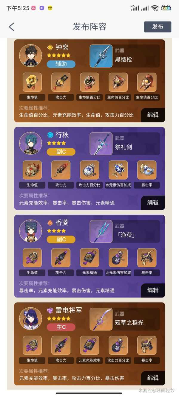 行秋香菱不多说,行秋辅助兼副C兼奶,香菱稳定脱手副C,这两个保证自己充能循环尤其重要。