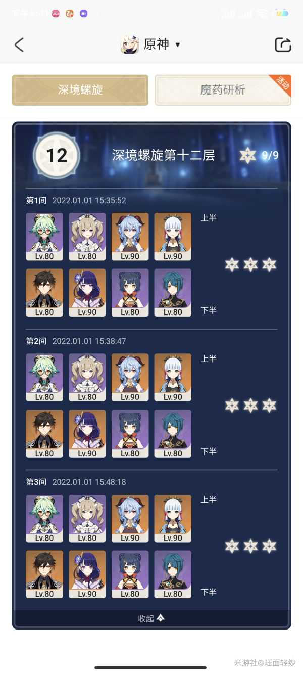 两个队伍比较平民,不需要高命的支持,生存能力强,不是被秒杀都能苟住,辅助成本低廉,记住上半利用好甘雨E技能,让神里输出多AOE,那么满星就简单了,下半阵容输出很快,毕竟元素反应。