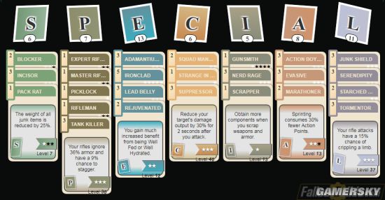 魅力有6点可以分享2消耗卡。一星的BODYGUARDS / TENDERIZER / RAD SPONGE/ STRANGE IN NUMBERS四选一,其他靠队友分享。
