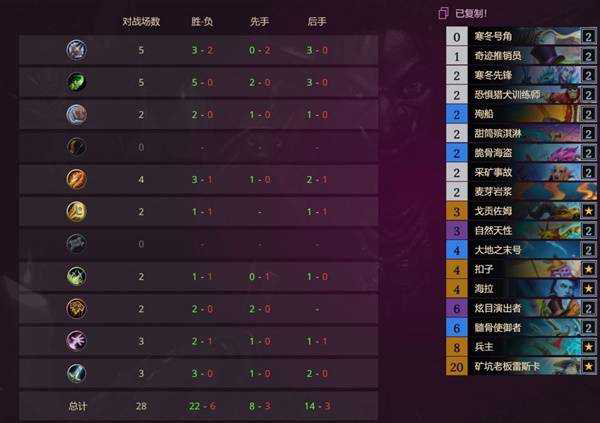 各职业优劣:这套抓瞎很稳,打控制有直伤有铺场,大部分都能推掉,打下来没什么特别大劣势的对局,比较难打的就大法术法,污手骑。