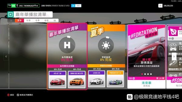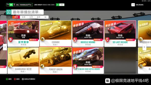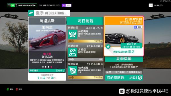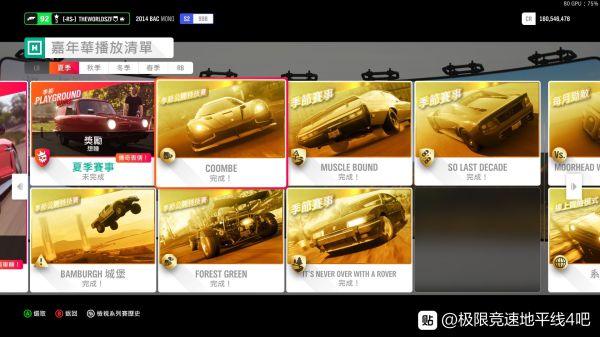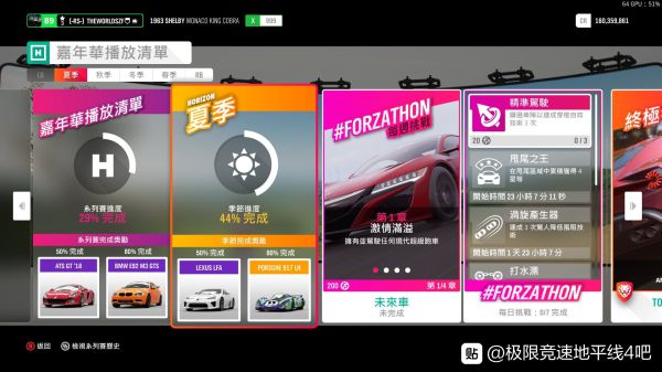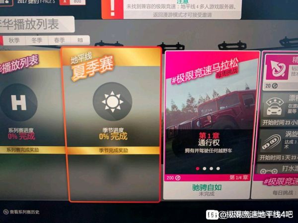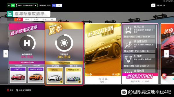 接下来是夏季列表右边的FORZATHON每周挑战,不知道为什么很多人喜欢无视他,但是他确实完成后也涨进度,甚至和系列赛19的进度差不多。