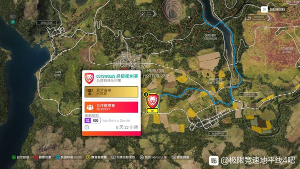 之后就是各种比赛与测速区间,测速照相等等的季节赛事了,打开地图,打开筛选,选择季节赛事,季节公开挑战,你可以在地图上看见红色的几项比赛,就是你要完成的东西了。