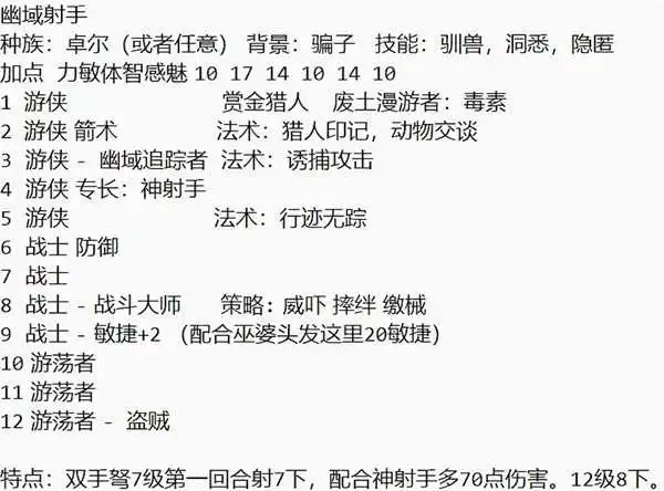 幽域射手的原理是配合战士的额外动作,在7级的时候便可以打出7次攻击,配合神射手专长有着较高的伤害。