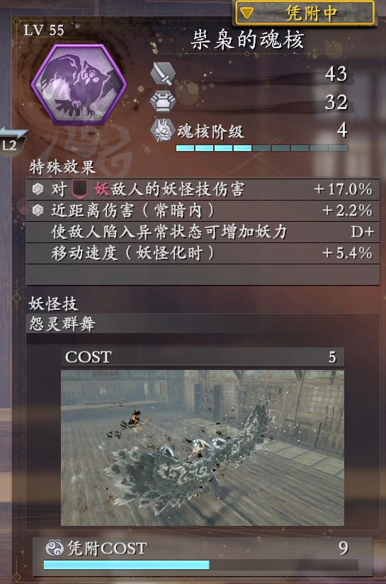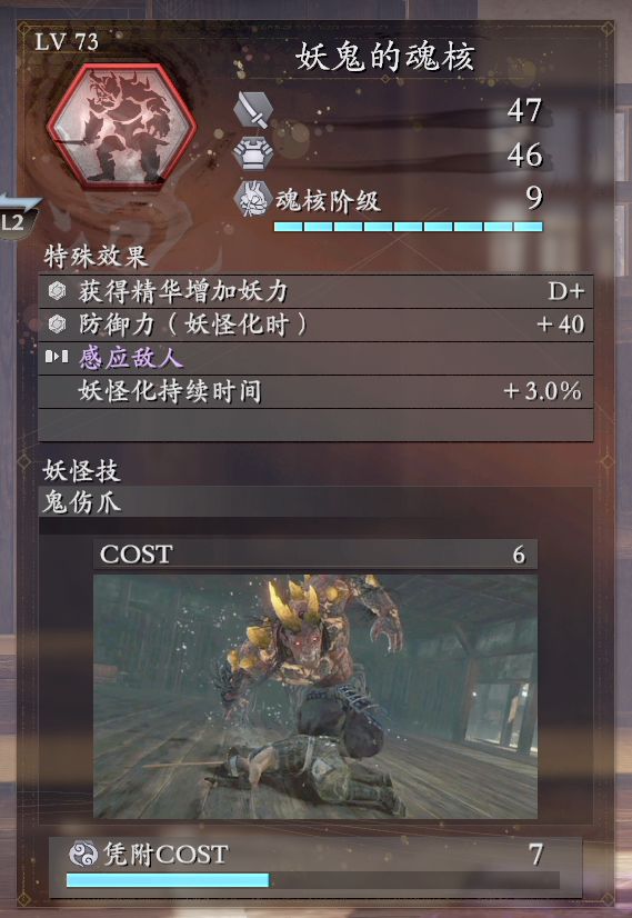 缺点:因怨灵鬼在流程里数量较少,获取困难,凭附要求高,妖力消耗较高,削精效果不如大眼仔