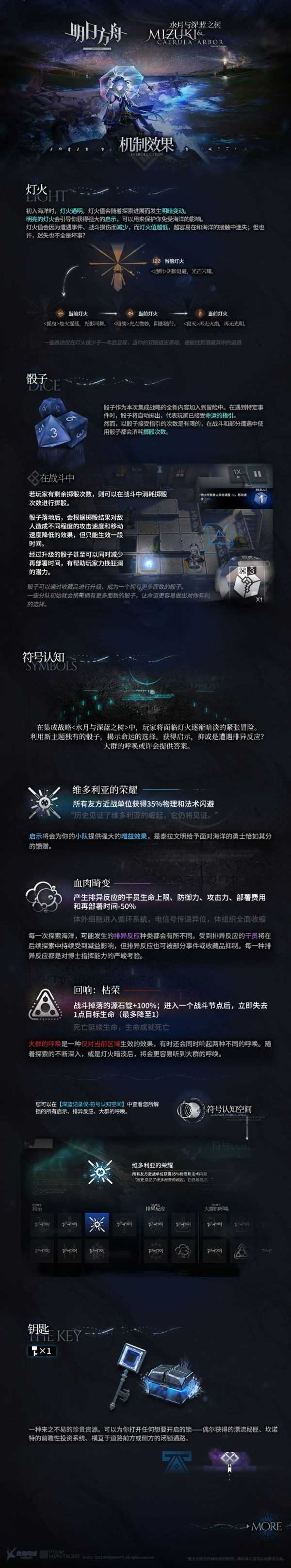 《明日方舟》官方公布了水月与深蓝之树的机制介绍,相信不少玩家都很关心这次更新了哪些内容,有哪些效果值得期待,下面请看由官方带来的《明日方舟》水月与深蓝之树机制效果介绍,希望对各位玩家有帮助。