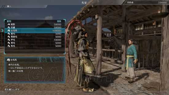 玩家一开始就可以设定为骑马状态来游玩,不过也可以在城镇村庄中的「贩马店」购买更优秀的马。