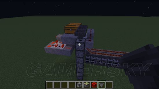 第五步:搭建一个柱子,投掷器做的,全部朝上,用漏斗接上箱子。