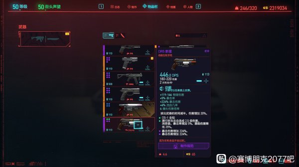 当然这种紫品左轮是很难roll到的,紫品最佳属性就是这个了,一般1207的是第二好的属性,最好的就是400多的这种0暴击率的(仅限满级后讨论)。