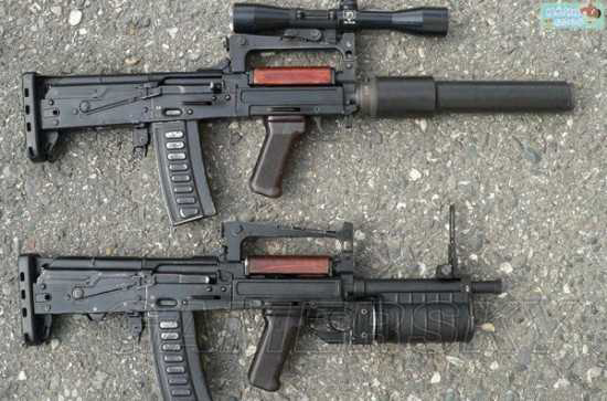 OC-14“Groza”(俄文ОЦ-14“Гроза”,其中“Гроза”即“雷电”,也有英语名称为OTs-14)并不只是一种突击步枪,而是一种突击步枪+榴弹发射器的综合武器系统的名称。根据陆军SpetzNaz部队的要求,还研制了一种7.62mm M43口径型,名为“雷电-1”(Groza-1),按SpetzNaz的要求,“雷电-1”通用AK-47和AKM的弹匣,并可安装AK-47的第三型刺刀。