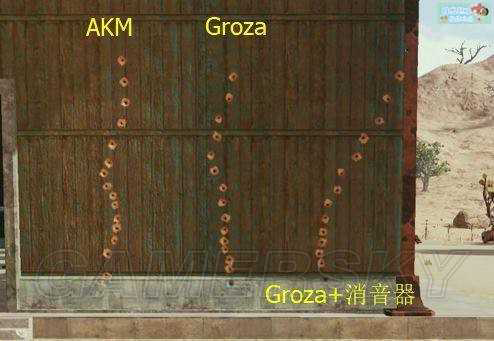 Groza以及加装消音器的Groza和AK的弹道对比图