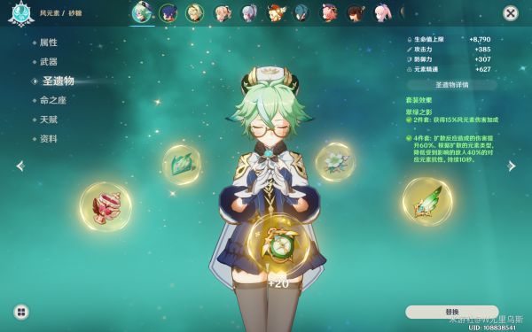 圣遗物推荐:风套四件套,如果凑不齐精通怎么高怎么怼。