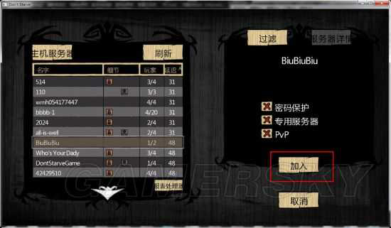 1、通过游侠对战平台饥荒房间进入游戏。(看不到主机的,一定要在右边的打开局域网选项中选是)
