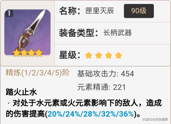 毕业武器,特效跟胡桃机制一致,可以强上加强!高额的爆伤也不容小觑。
