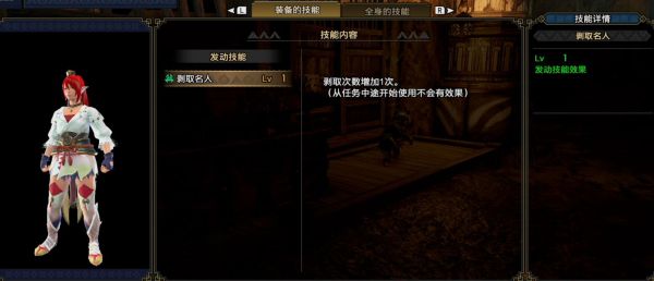 此装备无法打造,无法出售,在装备箱中可直接装备,装备技能-剥取名人:剥取次数+1。