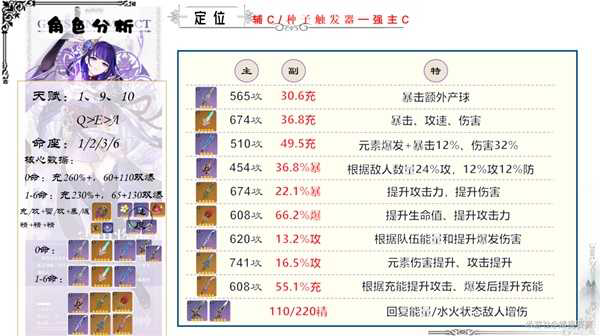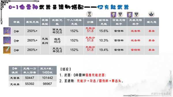 雷神伤害取决于4个要素:攻击力、充能效率、暴击率、暴击伤害,也是玩家需要协调的部分。