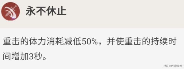 降低重击消耗,提高重击持续时间。