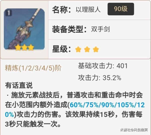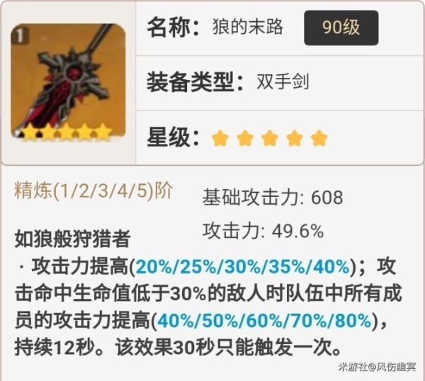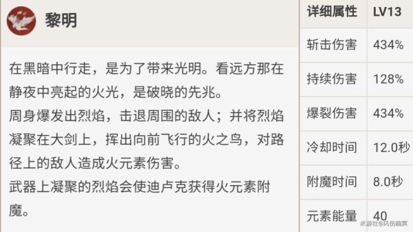 这把也是不错的武器,高额的基础攻击力,造成的伤害直接提升,并且大招后附魔的普攻也得到了加强,可以说非常合适迪卢克了。