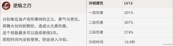 前期过渡用,刚好E完接普攻触发特效,迪卢克有三段E,几乎全程生效。