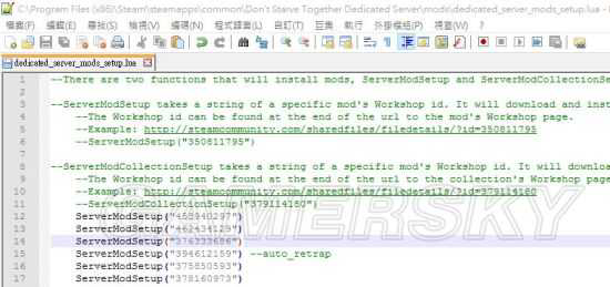 用notepad++修改上述路径中的"dedicated_server_mods_setup.lua"