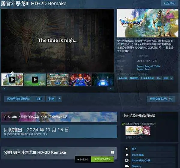 《勇者斗恶龙3重制版》运用了更加优秀的画面重制了经典作品,目前已经可以在多平台提前预购了,想要了解和购买本作品的玩家请看下面《勇者斗恶龙3重制版》购买指南,希望能够带来帮助。
