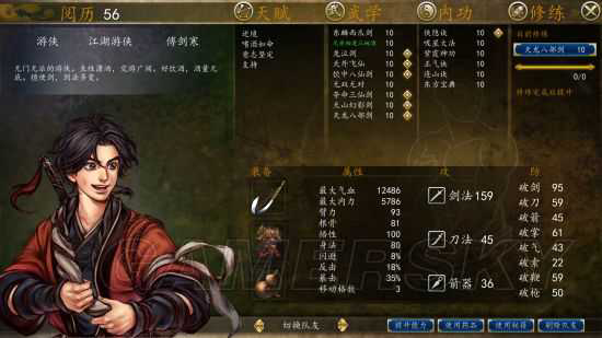 剑法多出来的我都给了傅剑寒,是因为他的四维很好,全都能上80。如果一定要说谁强谁弱,这一点应该算是一个优势。如前所述,由于他能学水盘盘学不了的夺命三仙剑,所以我干脆就把多出来的剑法全都给他了。