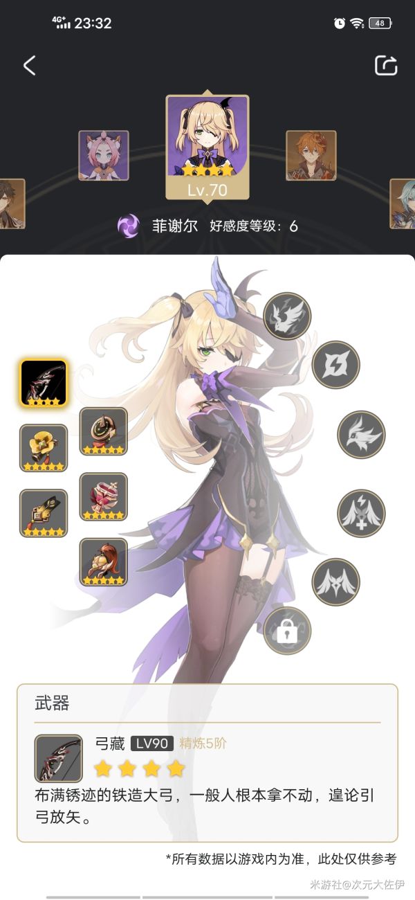 优菈、罗莎莉亚(辛炎)、皇女(北斗)、钟离(迪奥娜)