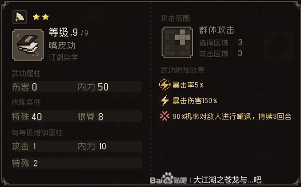 内功学多了血量会高,但是我没有发现太多加防御的武功,所以到后期包狗儿比较脆,虽然只要能撑住一回合就行。不过到了后期主角起来,其他队友都不重要了。