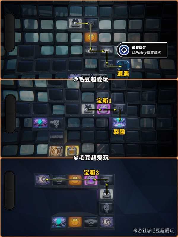 会标注走格子的路线,部分数据、物资箱会隐藏,需走到特定格子才会显现!物资箱获取进度可通过“空洞深潜系统”的“剧情委托”或者“探索委托”,选中对应的副本后点“委托详情”查看,剧情以及战斗过程就不再赘述了。