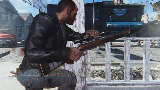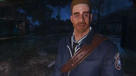 两个人端着枪走出钻石城,钻石城守卫用纯洁的笑容对老冰棍说:“嘿嘿嘿,我就想问问,嘿嘿嘿,你以前是什么工作的?嘿嘿嘿。。。”