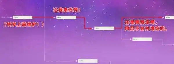 同样是选择【(快步上前袒护!)】,但是之后选择【让我来代劳!】。接下来寻找四处躲藏的荒泷派成员。第一个成员在屋顶,第二个成员在桥下,第三个成员处会有不同选项。选择【还是跟我走吧,阿忍不会为难你的。】将成员带回,之后三人会被久岐忍统一学习派中法度。