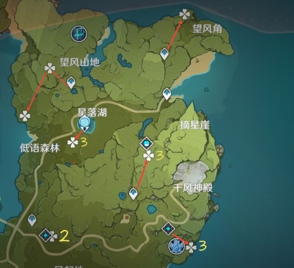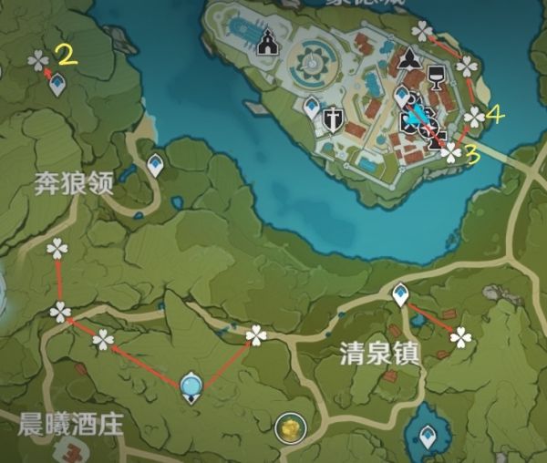 (注:下图四叶草形状的图标表示“蒲公英籽”,图标附近的数字表示数量,未标注的表示“1”)