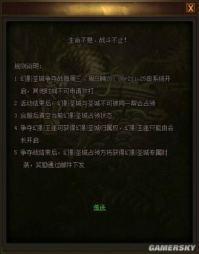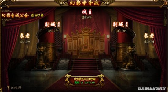 幻影圣城的打法跟圣城不一样,并不是站在皇宫里面没有其它公会的玩家就能取得幻影圣城,而是需要公会会长进入皇宫,点王座读取进度条完成方可获得。