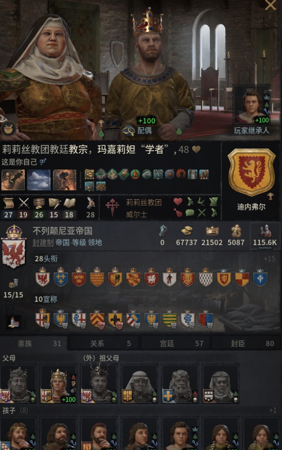 当然天主教肯定不可以,所以要自建宗教,继承人基本都是下面这种属性,因为AI不太可能搞出这种属性的人所以还是靠自己吧,夫妻都有的共同特质,孩子很容易继承,再加上宗族的继承能力,像下面这种3大特质全满的继承人也是近亲结婚的产物。
