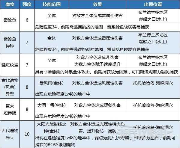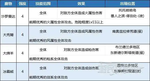 在刚开局无法前往地牢迷宫捕获高级魔物时,可以先考虑捕获下方列出的魔物用来过渡(部分魔物名称为暂译)。