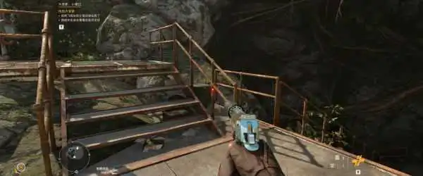 一直走到下图位置 左手边过去可以拿到一点资源 右手边下去继续寻宝