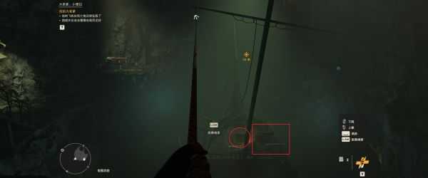 走到下图位置 挂钩荡到船上 跟红框位置的火炮互动 互动完可以从红圈位置下去捡一封文档 拿到游泳出去