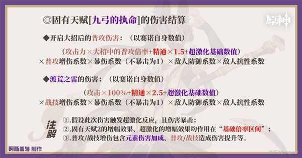 赛诺自身的基础倍率区间包涵了赛诺的攻击力、固有天赋的精通转化机制、超激化的基础伤害提升,武器优先考虑双暴可以补正赛诺其他区间,非五星优先考虑精5等级。