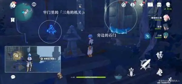 图示地点,镜头左移,普攻旁边的「三角的机关」。