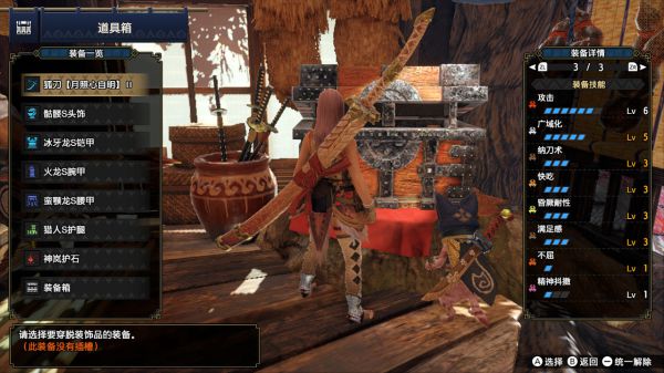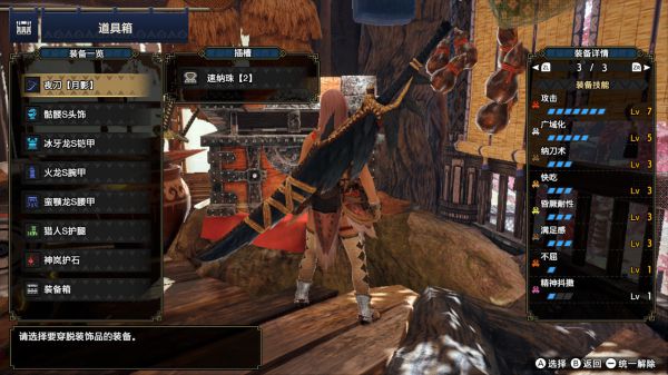 新刷出来一个快吃3s2,所以能攻击7纳刀3奶太刀了,需要广域珠*5,攻击珠*1,速纳珠*2,武器还是迅龙太刀,但是泡狐龙太刀比较帅所以我一般少一级攻击用泡狐太刀