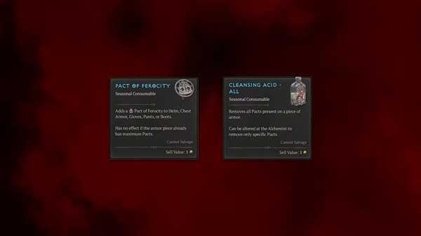 独立血契可用来为物品增加你所选择的血契(仅能在该物品未达血契类型上限时使用)。净化酸剂可用来移除物品上的血契。