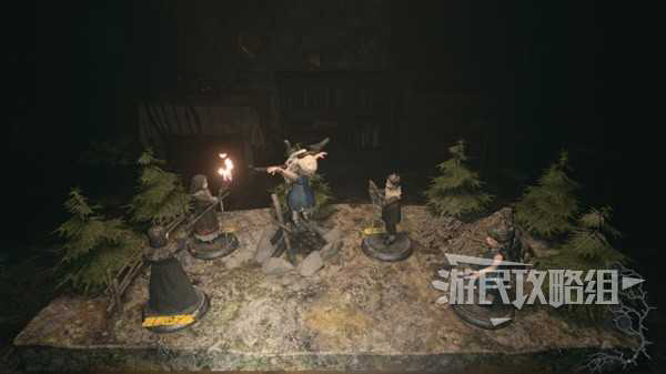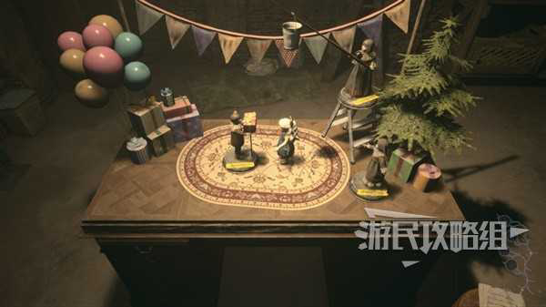 返回大桌子处,将4个人偶按下图所示摆放,就可以解开人偶谜题。