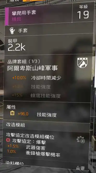 5.手套使用阿尔卑斯山峰军事减CD10%,手套一样是没有减CD属性。