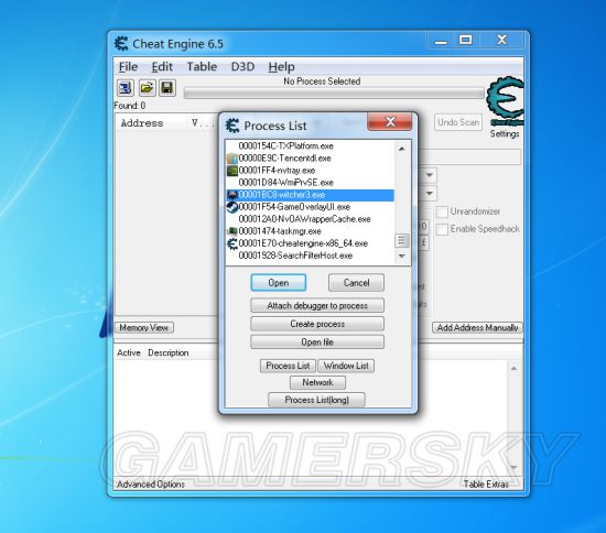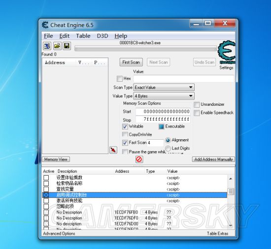 安装好ce6.5后,进入游戏,最小化返回桌面,打开ce6.5,左上角的小电脑符号,选择巫师3进程,然后小电脑右边的文件夹按钮,载入我发的脚本,然后在开启控制台选项那打勾(实际是×),然后回到游戏