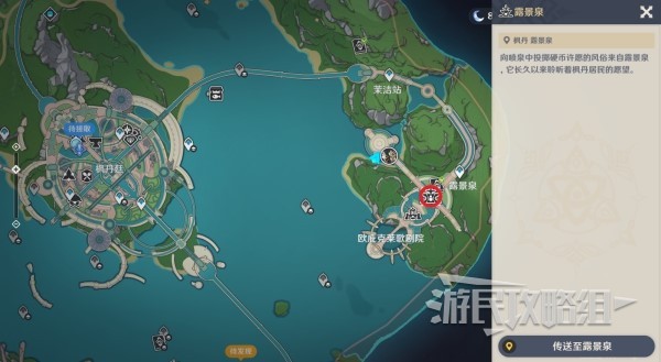 露景泉位于4.0版本新增区域枫丹,奉纳水之印可以获得相应奖励。需要完成魔神任务第四章第一幕才能解锁,完成后前往露景泉与其互动即可解锁。