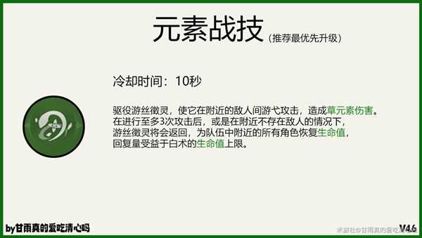 如果元素战技只打到一个敌人,则会造成三次草元素伤害。