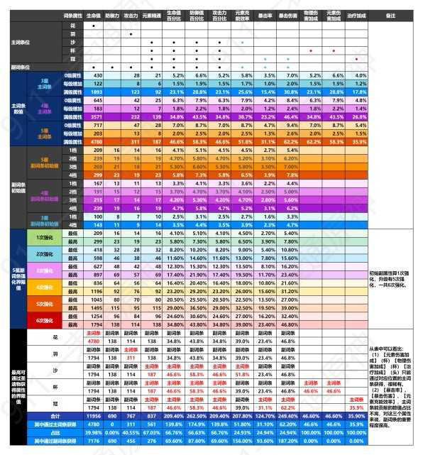 5、同一件圣遗物主副属性不会出现相同词条。