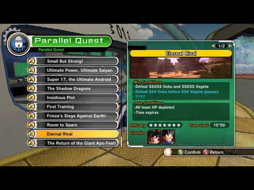 胜利条件:击败蓝发孙悟空和蓝发贝吉塔
