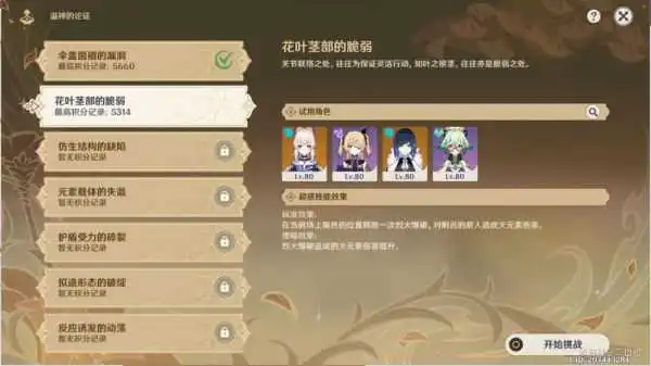 《原神》活动溢神的论证已经开启了,第二天的任务是花叶茎部的脆弱,试用角色包括心海、菲谢尔、夜兰和砂糖,下面是由“二也也”带来的《原神》溢神的论证花叶茎部的脆弱任务攻略,希望对大家有帮助。