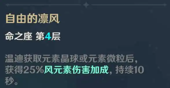 四命因为温迪技能CD短,基本相当于常驻的25%风伤加成。