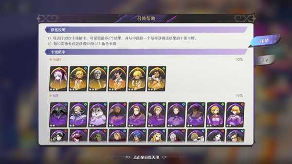 新手卡池里SSR卡一共六张,有迪米乌哥斯、塞巴斯、亚乌菈、马雷、夏提雅、葛杰夫。每张SSR卡牌角色都可以与SR卡牌搭配一套阵容体系。